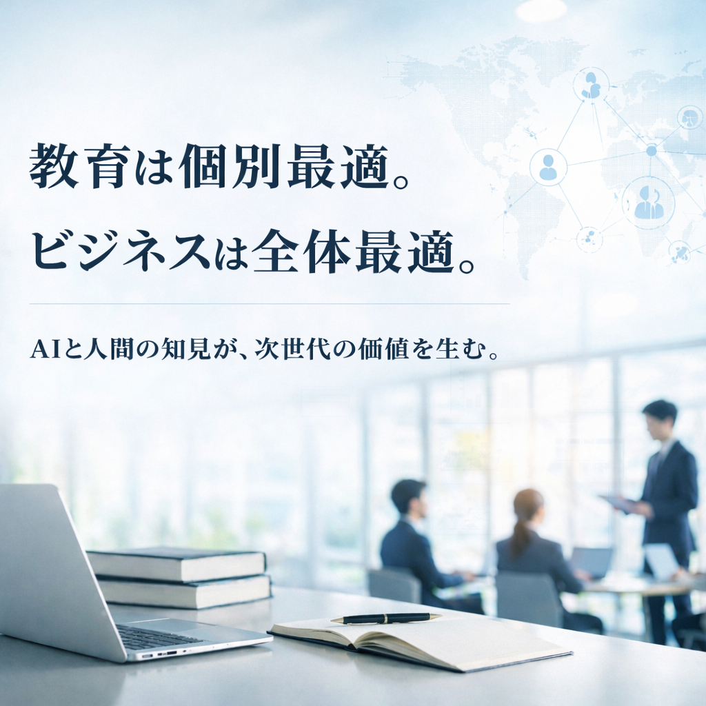 個を尊重し、多様な価値観をつなぐボーダレスな社会へ進展していく中、教育は個別最適、ビジネスは全体最適へ。AIと人が共創し、新たな価値を生み続ける未来を実現!